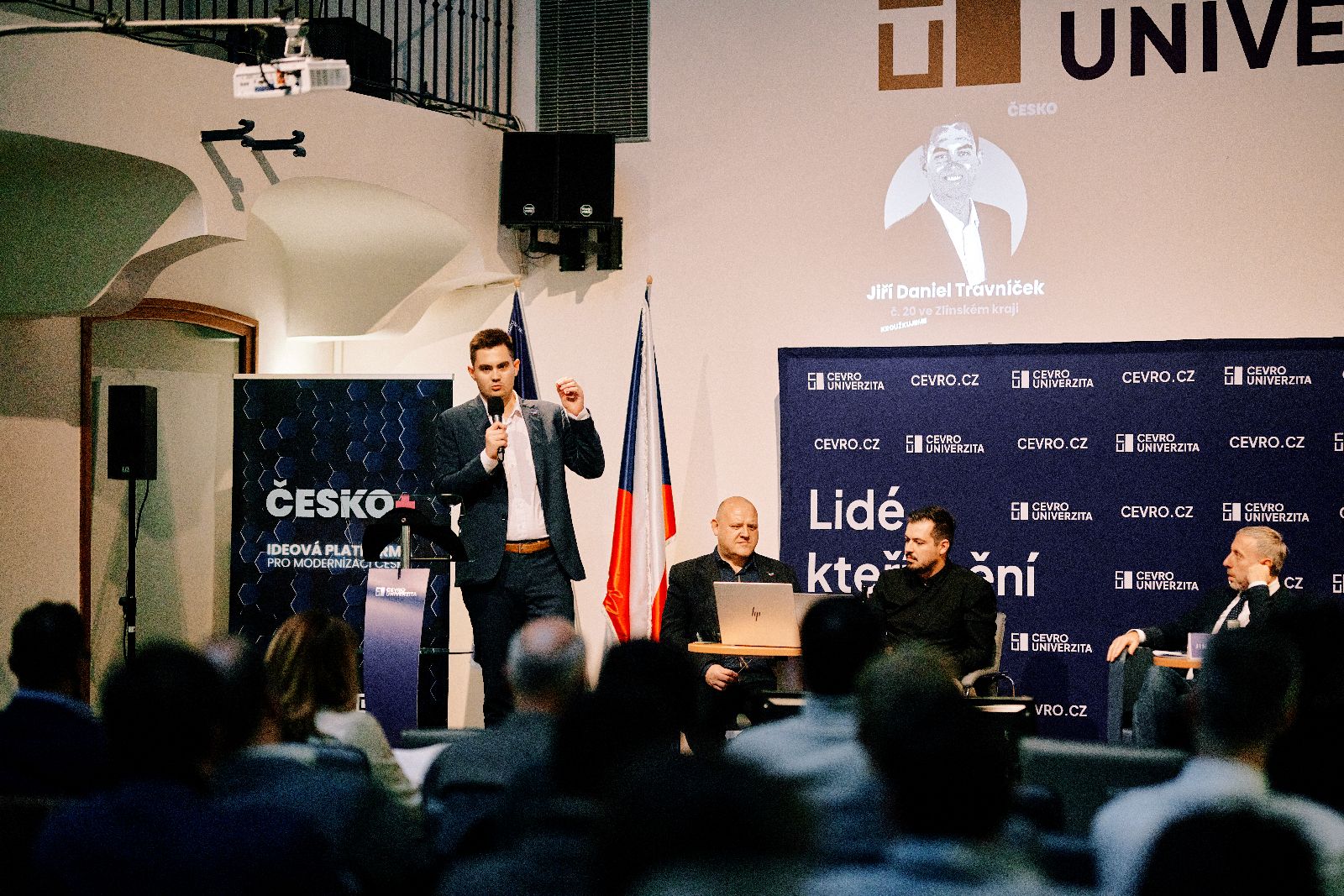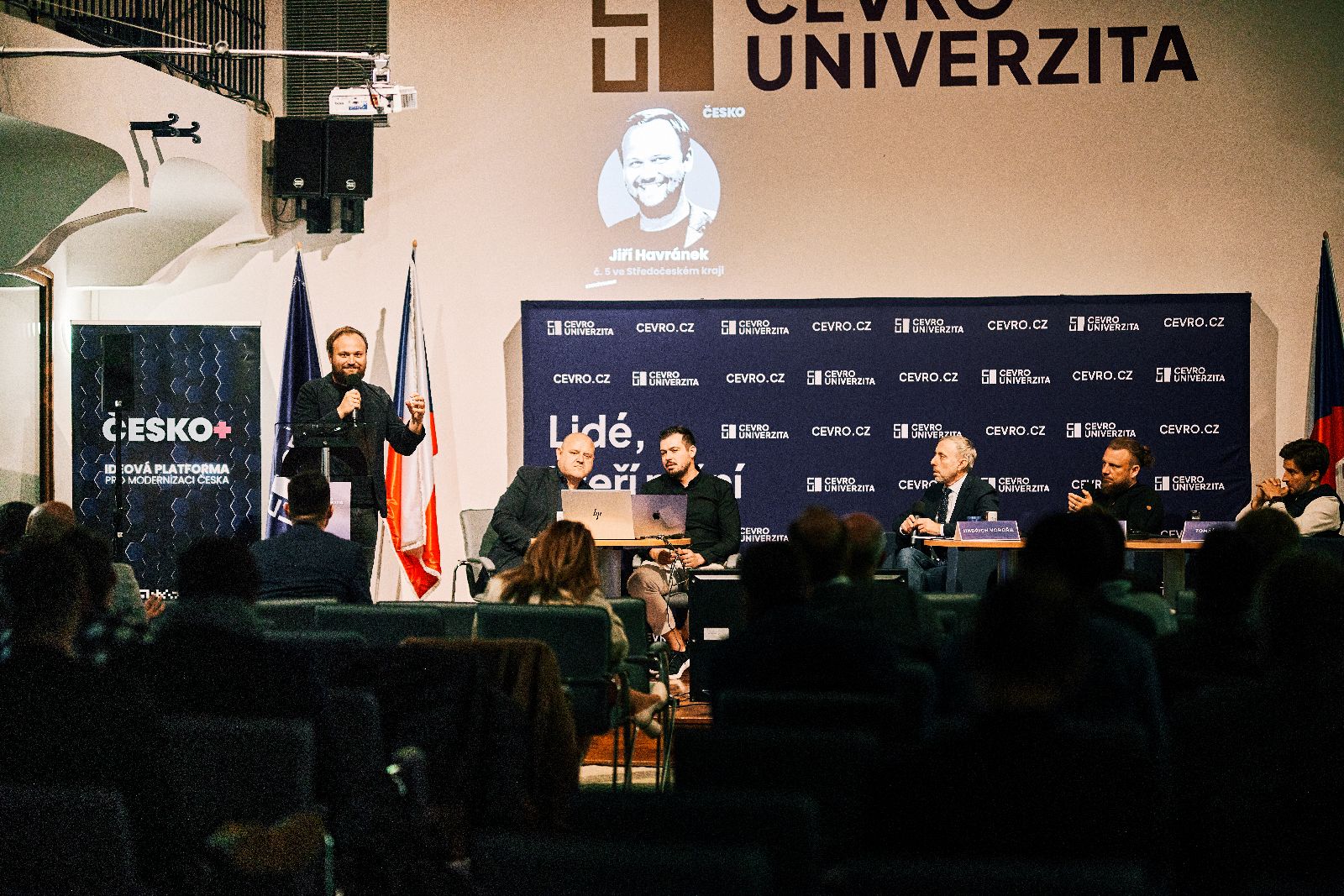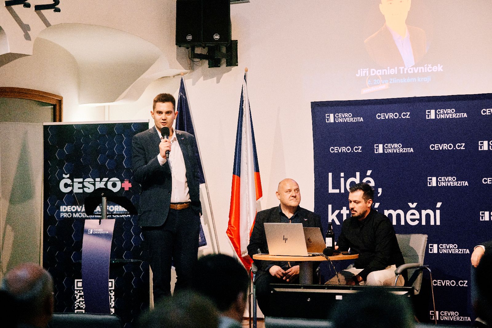V sále CEVRO Univerzity v Praze proběhla programová smršť projektu ČESKO.plus s podtitulem Jak modernizovat Česko? Akce nabídla sérii krátkých tříminutových prezentací, ostré otázky poroty i živou diskuzi o konkrétních návrzích, jak posunout Českou republiku vpřed. Do večerního programu se zapojili účastníci z celé republiky, především z řad ODS, ale také z nových stran Voluntia.cz či Motoristé sobě.