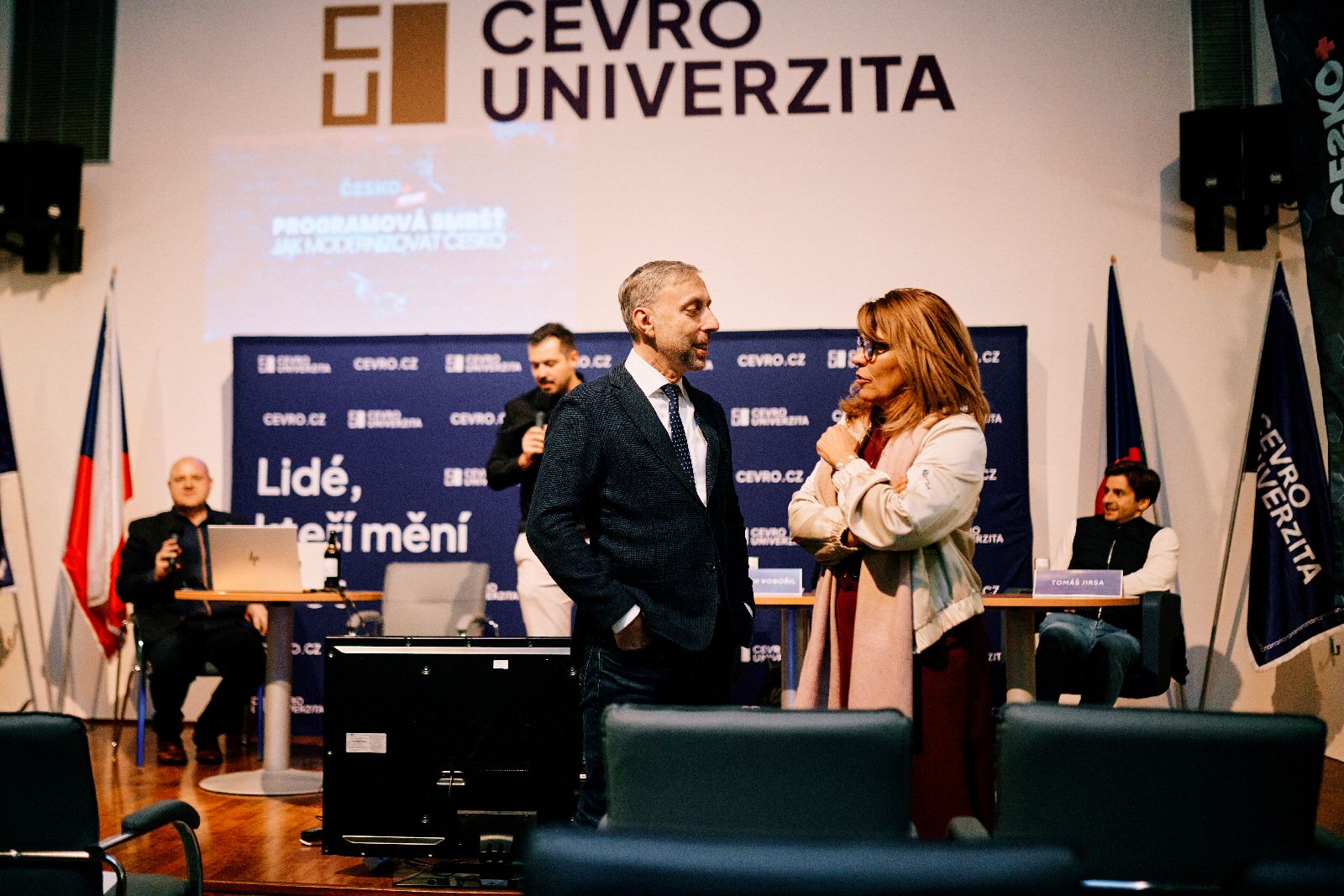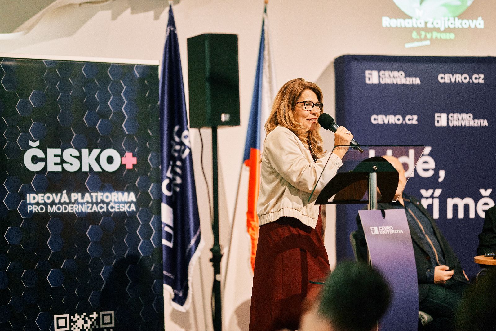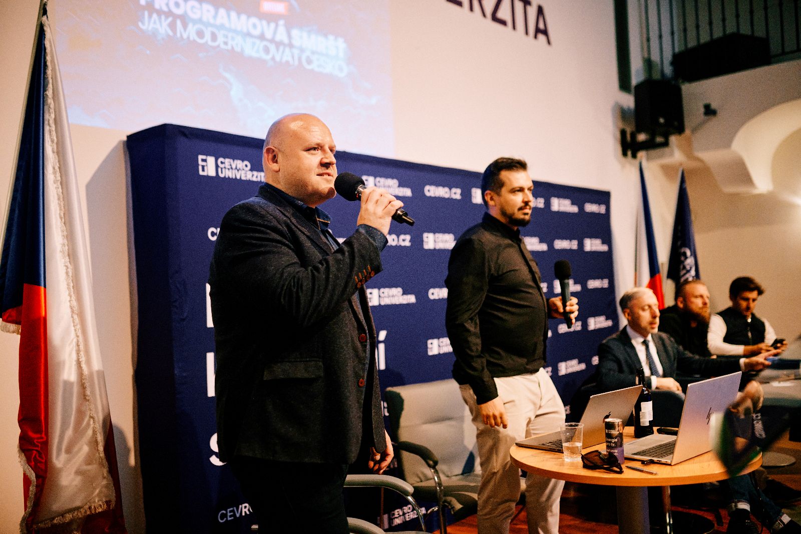 V sále CEVRO Univerzity v Praze proběhla programová smršť projektu ČESKO.plus s podtitulem Jak modernizovat Česko? Akce nabídla sérii krátkých tříminutových prezentací, ostré otázky poroty i živou diskuzi o konkrétních návrzích, jak posunout Českou republiku vpřed. Do večerního programu se zapojili účastníci z celé republiky, především z řad ODS, ale také z nových stran Voluntia.cz či Motoristé sobě.